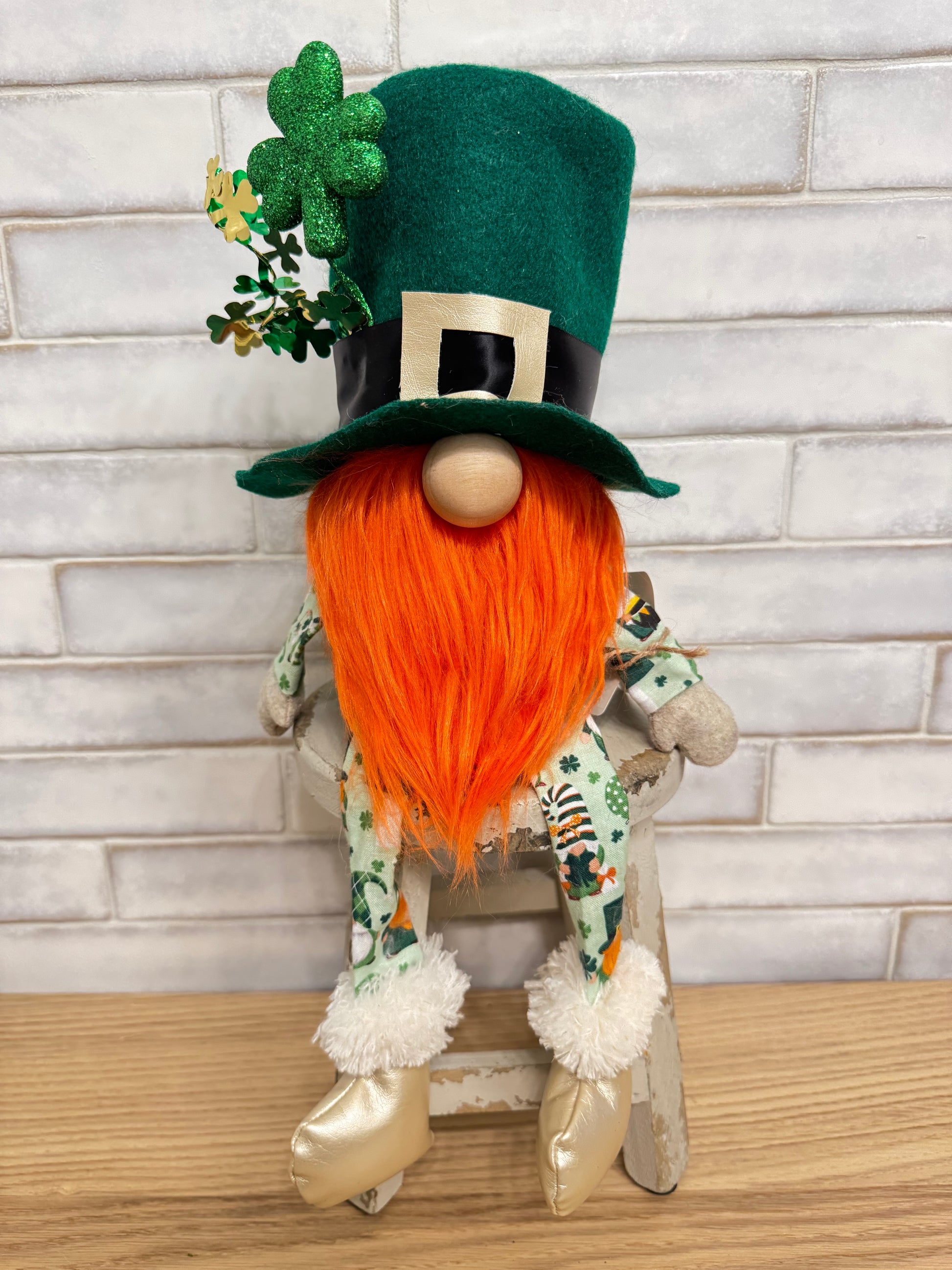 Chummy Charlie features one of our fine felt hats with golden boots and St Patty's gnome fabric body. He has an orange beard.